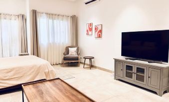 Nestled in Dakar, this delightful apartment offers a cozy living room with a king bed, perfect for guests to unwind after a day of exploring. With amenities like WiFi, AC, and a washing machine, this adorable space provides everything you need for a comfortable stay. The bathroom is equipped with all the essentials, ensuring a relaxing experience. A great place to call homebase while you're away, we hope you enjoy your stay.About pets:No pets allowed.About checkOut:Check out before 12:00 PM.About children:Children allowed: ages 0-17.About checkIn:Flexible check-in available (contact host in advance of arrival).About smoking:Smoking allowed: in designated areas.About minBookingAge:Minimum age to rent: 23.About events:Events allowed: family gatherings.Maximum event attendees: 10.