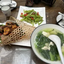 Les enfants ont beaucoup aimé la vieille maison et dès leur arrivée à l'hôtel, ils ont pris des photos en haut et en bas. Le patron est très gentil et hospitalier. Un verre de bienvenue et des fruits nous ont été offerts et le dîner au restaurant était tout à fait délicieux. Je recommande le Five Golden Flowers, qui est assez unique. Le petit déjeuner est tout à fait satisfaisant, c'est un peu lent à manger quand il y a beaucoup de monde, et il y a peu de variétés.