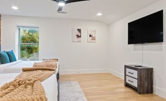 The master suite on ground floor boasts a luxurious king-sized bed and ample closet space for a truly restful stay. Two additional bedrooms on ground floor each feature plush queen beds, while the fourth bedroom on first floor offers two cozy queen beds, perfect for kids or friends to share—conveniently located next to the game room for nonstop fun. Thoughtfully designed for comfort, space, and privacy, this stylish retreat is ideal for families and groups seeking unforgettable memories.