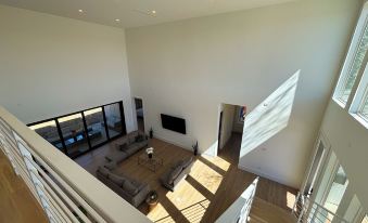 Soaring Ceilings & Expansive Windows – Flooding the space with natural light and creating a bright, airy atmosphere.