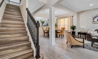 Elegant ceramic tile on the first floor and luxury vinyl plank flooring upstairs.