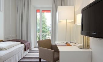 Angenehmer Aufenthalt im National Davos. Unser Superiorzimmer war geräumig und ruhig. Wasserkaraffe zum Auffüllen im Zimmer sowie grosses Bad ohne in Plastik verpacktes „Krimskrams“ war ganz nach unserem Geschmack. Spa klein aber fein. Das Frühstücksbuffet ist einfach und dürfte unserer Meinung nach etwas vielfältiger und liebevoller ausfallen. Es gibt einen wunderschönen Aufenthaltsraum mit Cheminée und Piano. Schön hätten wir gefunden, wenn es eine Kaffee/Tee Station gäbe, insbesondere, da die Bar wie auch das Bistro, welches leider nicht direkt zum Hotelbetrieb gehört, geschlossen waren. Insgesamt aber hat es uns aber gut gefallen und das Personal war freundlich und hilfsbereit.