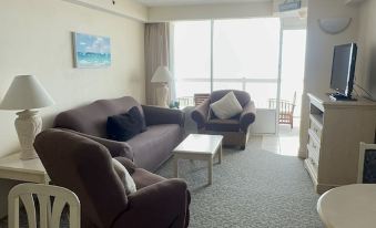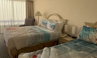 2 Queen beds and sleeper sofa – roomy – oceanfront – perfect for a family stay at the beach. Hope to see you! 🏖 ** At present the hotel facilities pool facilities are closed for some repairs but you can still hit the beach by going through the lobby and walking around the north side of the hotel where there is a ramp directly to the beach and outdoor showersAbout pets:No pets allowed.About checkOut:Check out before 12:00 PM.About children:Children allowed: ages 0-17.About customRules:$50/per person per night over 4 guests.About checkIn:Check in after 4:00 PM.About smoking:Smoking is not permitted.Smoking is permitted outside on the balconies..About minBookingAge:Minimum age to rent: 21.About events:No events allowed.