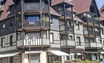 Deauville: Belle résidence "Les Jardins du Yacht Club". Situation centrale, à 900 m de la mer, à 900 m de la plage. Infrastructures de la résidence: ascenseur. (5 marches). Magasins, magasin d'alimentation 200 m, supermarché 400 m, restaurant 200 m, arrêt de bus "Yacht Club - Marché" 200 m, gare ferroviaire "Deauville - Trouville" 400 m, piscine couverte 1 km, centre thermal "Deauville" 1 km. Terrain de golf (18 trous) 3.9 km, tennis 1 km, centre équestre 1 km. Attractions à proximité: Centre International Deauville - CID 900 m, Hippodrome Deauville - La Touques 900 m, Mémorial de Caen 54 km, Plages du débarquement d'Arromanches 82 km. La remise des clés a lieu à l’agence Interhome de Deauville.