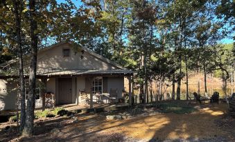 Enjoy this peaceful little cabin located in scenic Little River Canyon. Just a 6 minute walk to Eberhart Point with hiking and swimming and a convenient drive to downtown Fort Payne, Mentone, Lake Weiss, Desoto State Park and more. At the cabin you can enjoy the private lake with great fishing, and a private dock with dining. The cabin has a large back deck with a gas grill, patio furniture, and dining table with the best views of the lake. On the back deck there is also an outdoor private shower(seasonal). To the side of the cabin is a fire pit with seating to roast some marshmallows or just sit by a cozy fire, along with a swing looking over the lake. Inside the cabin both bedrooms are king size beds with large closet space in both rooms. There is also an extra cot provided should it be needed. A large living room with a smart TV and lots of seating for social time. Kitchen comes complete with a stove and dishwasher, all kitchen dishwater and cookware, all of this just a door away from the back deck. Guest are welcome to explore the property around the lake. This is the perfect getaway!About pets:No pets allowed.About children:Children allowed: ages 0-17.About smoking:Smoking is not permitted.About events:No events allowed.