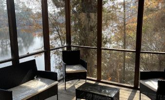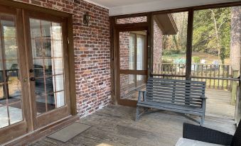 This guest house on the lake is very pretty. It’s bigger than you think when you first pull into the drive. Finding it was a little difficult. You have to pull into the main driveway and go around the back through the gates to the guest house. The house was clean and very spacious. The two bedrooms were very large and I had a large bathroom with a walk-in shower that was beautiful. Everything we needed was already in the cabin and they also had some soaps and shampoos that were left over from previous guests just in case somebody forgot something. Communication with the host was very quick and they were very responsive and even answered some questions about local pizzerias the screened in porch was very nice for us to sit out and enjoy in the morning and the evening looking over the lake.
