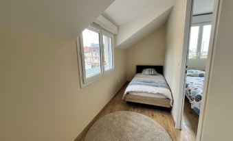 L’aéroport le plus proche est Aéroport de Deauville - Normandie, situé à environ 28,4km de l'hôtel soit à peu près 33 min en voiture..Quel est l'aéroport le plus proche de A 5-minute walk from the beach and shops. Ideal for families. ?