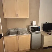 L'espace est confortable et il y a un micro-onde, ce qui est très bien