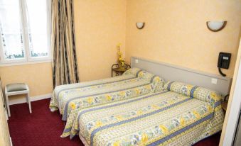 Chambre triste jamais refaite depuis au moins 20 ans. Chaise avec tissu déchiré. Reste que les anneaux des doubles rideaux....manquants. Lits non fais depuis le covid !selon les dires du patron. Gel douche jamais renouvelé....biensur serviettes non changées. Horrible !