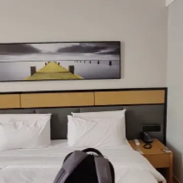 J'ai fait un voyage de deux jours à Hengdian avec ma mère et j'ai choisi cet hôtel pour rester. La marque de la chaîne est vraiment bonne et fiable. Tout d'abord, l'emplacement est très bon. Il est très proche du Palais Qin et de Dream Valley. Vous pouvez voir directement la grande roue depuis la fenêtre, et il y a de nombreux restaurants aux alentours ; Deuxièmement, la salle est grande et propre les filles de la réception sont très enthousiastes ; Inconvénients : Le téléphone dans la chambre ne fonctionnait pas et c'était un peu compliqué d'appeler le service ; l'insonorisation ne semblait pas très bonne et les dames de la chambre voisine m'ont réveillé tôt le matin.