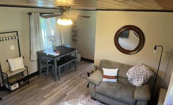This place was very clean, welcoming and cozy, and had everything you would need for a short stay. They really thought of everything! It's too bad there was a state burn ban, because even the firepit area was well appointed, and a campfire would have been lovely:)