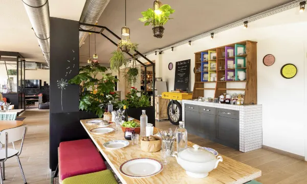 Hôtel très bien , un concept original ( produits locaux, terrasse, grand espace vert, piscine …)