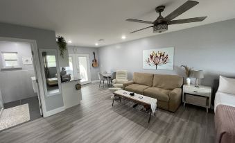 Romantic suite sectioned off from the main home as a guest suite. The guest suite has a private bath and private entrance. You will enter into the "living room, "that has desk/eating area, a smart TV a couch, plus a walk-in closet. Enjoy your morning coffee at the court yard 🌴 just across your entryway, fish right off our dock, view dolphins 🐬 swim by and watch magnificent sunrise 🌅 and sunsetAbout pets:No pets allowed.About checkOut:Check out before 11:00 AM.About children:Adults only.About checkIn:Check in after 4:00 PM.About smoking:Smoking is not permitted.About events:No events allowed.