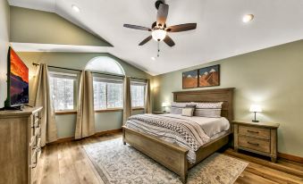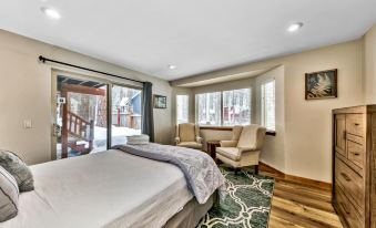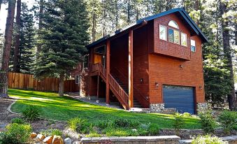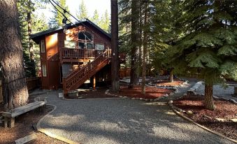 This mountain hideaway is a stone’s throw from all of Tahoe’s best adventures 4BR beauty with a backyard offering gravel pathways, fairy lights, lounges and a deck is just 6 miles from Heavenly Resort