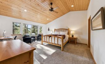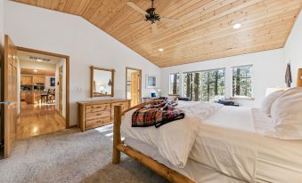 Gather your group in the heart of the home—the sunlit great room—for relaxed evenings around the fire, home-cooked meals, and board game nights. After a day exploring the outdoors, soak in the hot tub or lounge on the private deck surrounded by towering pines. With quality mattresses and ample space to spread out, everyone will wake up ready to take on another Tahoe day.