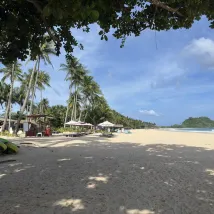 La meilleure plage près d'El Nido, je la recommande (mais il y a des petites méduses là-bas - un peu gênantes mais sécuritaires). Les petits déjeuners sont délicieux et proposent un large choix de café glacé et de fruits frais gratuits. Le personnel est très réactif.
