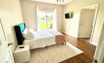 The entire home, front and back fenced yard. Shared driveway w/ home next door.About pets:Pets allowed: dogs less than 50 lbs per pet (limit 2 pets total).About checkOut:Check out before 11:00 AM.About children:Children allowed: ages 0-17.About checkIn:Check in after 3:00 PM.About smoking:Smoking is not permitted.About minBookingAge:Minimum age to rent: 21.About events:Events allowed: family gatherings, birthday parties, weddings.Maximum event attendees: 30.