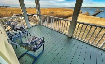 Enjoy the only on-site beach, the covered dock is the biggest in the neighborhood as well and perfect for fishing, crabbing, and swimming where the water doesn't get above six feet. We also have crab traps and hand nets you can use as well as a large crab pot for cooking. We have four kayaks, two ride on top, one ride inside, and large tandem available as well as two paddle boards for shared use as well. There are PFD's to fit most sizes available as well. Bringing your own boat is a possibility and something we must discuss directly for separate fee and agreement. There is a full covered shower to wash off your beach and river fun from the day before going inside. Then relax in the Jacuzzi hot tub facing the river and amazing starry nights.