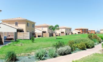 Complexe de vacances accueillant pour les enfants, moderne "Domaine du Golf". 220 maisons dans le même complexe de vacances. À 18 km du centre de Montpellier, à 2.5 km du centre de Fabrègues, à 16 km du centre de Palavas-les-Flots, à 12 km de la mer, dans la verdure, en bordure du terrain de golf. En commun: beau jardin entretenu, 11 ha (clôturé) avec pelouse et plantes, piscine cloturée (550 m2, profondeur 30 - 160 cm, disponibilité saisonnière: 15.Avr. - 30.Sep.). Piscine de forme irrégulière. Ping-pong, terrain de pétanque, terrasse, meubles de jardin, espace de jeux pour les enfants. Infrastructures de la résidence: réception, café, salle fitness, lave-linge, sèche-linge (en commun, en sus). Service boulangerie. Sentier jusqu'à la maison. Places de parking centrales. Supermarché 2 km, restaurant 2 km, plage de sable "Frontignan-Plage" 12 km. Terrain de golf (6 trous) 100 m. Veuillez noter: complexe de vacances sans voiture. Animation en saison. La photo ne montre qu’un exemple de location de vacances. Les locations peuvent également se différencier par leur superficie, la disposition des pièces et leur équipement.