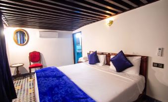 I was hesitant to book here at first due to the lack of reviews but I am so glad that I did. The location was perfect- in the medina but not too far from where the taxis will drop you off. The breakfast was plentiful and the hosts very accomodating when we wanted to get an early breakfast. My husband and I had the Superior Suite. It consists of two rooms. You enter into a room that has a sofa/sitting area and a double bed. Then you go in to a huge bedroom with a king bed and a twin bed. The bedroom has a mini fridge in it which made it nice to come back to cold drinks after a day in the heat. The AC worked great and the shower had plenty of hot water and water pressure. My daughter had a double room and my son had a twin room. Those rooms are on the smaller size but perfectly functional. Like most Riads in the medina there are some steep stairs.