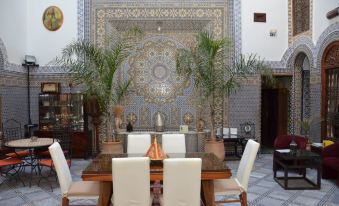 Pendant votre séjour dans ce riad marocain, vous apprécierez son restaurant qui propose le déjeuner et le dîner. Si vous préférez rester tranquille dans votre chambre, l’hébergement offre également un service d'étage (horaires limités). Pour bien finir la journée, vous trouverez sur place un bar / salon.