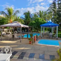 L'emplacement est parfait : l'hôtel est situé le long d'une route qu'il suffit de traverser pour accéder immédiatement à la plage municipale, avec une zone de parc bien entretenue, composée principalement de casuarinas qui procurent une bonne ombre. Le long de la plage, on trouve de nombreux stands de nourriture de rue, et la route regorge de cafés et de restaurants. Des vendeurs de délicieuses glaces passent également. Et les prix de la restauration sont tout à fait raisonnables. Il est également possible d'acheter des provisions au supermarché Jumbo le plus proche (à 700 m à droite de l'hôtel, en longeant la route).