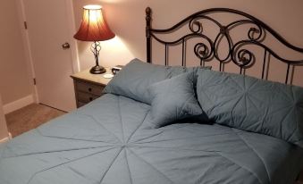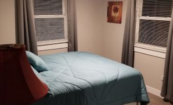 This space has many extras to make your stay comfortable. A large backyard with a dog run, back patio/balcony, lots of parking space, close to town, lakes, and events. The inside is fully functional and well-equipped so you can cook and relax without having to bring your own supplies.
