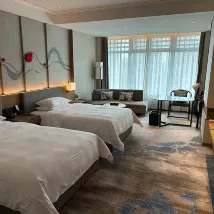 Le prix est là, fondamentalement satisfait. La vue depuis la fenêtre est bonne, mais c'est quand même un peu à l'étroit car elle fait face à l'immeuble résidentiel. Le service est également bon, avec deux enfants séjournant, il n'y a pas d'articles de toilette pour enfants, un appel à la réception sera délivré dans les 5 minutes. Le réfrigérateur est vide, seulement deux bouteilles d'eau gratuites, pas de café, pas de thé, pas de collations. Il faut s'en plaindre. Plus tard, j'ai demandé à la réception de demander de l'eau deux fois, et il est recommandé de mettre quelques bouteilles de plus. . . Bon, je vais commencer ma diatribe. Le dîner buffet au 6ème étage de l'hôtel coûte 188 (généralement 168). Connu sous le nom de festin d'écrevisses, il n'y a qu'un seul pot pour le public à 16h30, et c'est celui qui doit être aligné pour que le personnel puisse le ramasser.Petites assiettes, une portion ne compte que 7 ou 8 pièces. Il n'y a pas de plats très copieux, pas plus de 10 plats chauds, steak de poulet, plats chauds, plats froids, sashimi, petits desserts, etc., pas de soupe, pas d'eau sucrée, pas d'huîtres, pas de plats qui valent à mon avis 188. De plus, à cause de la foule chaotique ce soir-là, de nombreux plats sont tombés de l'assiette, des pinces ont été placées partout et il n'y avait pas assez de sièges. La coordination de la gestion fait toujours défaut. Au contraire, je trouve que le petit-déjeuner est plus riche, ce qui me fait manger plus librement. Tout le reste est bon. Il y a du thé et du pop-corn gratuits dans le hall, ainsi que des petits cadeaux. Il y a un centre commercial en bas.