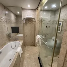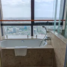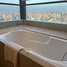 La chambre était parfaite (petit plus pour la baignoire vue sur la ville), le spa et la salle de sport incroyable et le petit déjeuner délicieux mélangeant style chinois et occidental.
