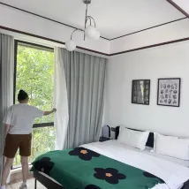 Réponse de l'établissement: 能得到您的理解和包容真是我們的榮幸!由於暑假旺季客流量大,房態緊湊,我們的後勤工作十分緊張,一般我們會確保衞生達標、床品全套更換乾淨後,再讓客户先行避暑休息,保潔阿姨繼續完成外圍細節工作,確保不耽誤客人,又不降低衞生標準。非常開心您和家人玩得盡興,也歡迎下次再來體驗更多私密又放鬆的度假時光!