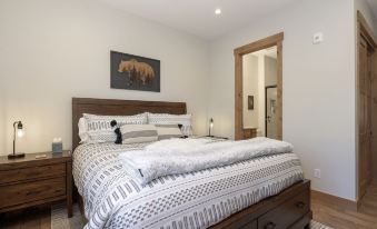 The two main bedrooms have new King beds with premium mattresses and bedding for the perfect night’s sleep. Each bedroom, including the bunk room, has new smart tvs. We have also included a highchair and pack and play for little ones. This is a second floor unit which has high ten foot ceilings and a corner gas fireplace to cozy up to on those cold mountain nights. A new front load washer and dryer are located in the condo, all toiletries including shampoo, body wash, and conditioner are included in the bathrooms. We also have a pack and play, high chair, and games included for the little ones. The dining table has seating for 8 plus the kitchen island has four comfortable chairs. The main living room has a new 65 inch smart tv with a comfy leather sofa which is also a queen sleeper that has an upgraded memory foam mattress. Free shuttles run in front of the condos to the ski resorts and surrounding areas. Private locked ski locker right outside the front door to conveniently store your gear.About pets:No pets allowed.About checkOut:Check out before 10:00 AM.About children:Children allowed: ages 0-17.About checkIn:Check in after 4:00 PM.About smoking:Smoking is not permitted.About minBookingAge:Minimum age to rent: 25.About events:No events allowed.
