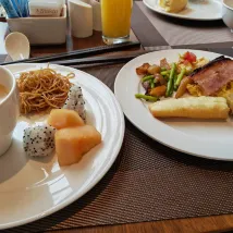 Le petit déjeuner est bon, mais le dîner gratuit n'est pas si bon, pas savoureux. L'assainissement est bon, le service est superbe et il y a un parc à daims adapté pour amener les enfants à jouer. Il y a une salle de gym, une piscine, une salle de yoga... J'aime beaucoup, je suis resté deux jours et l'expérience est très bonne