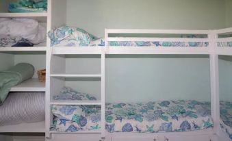 Two master bedrooms each have comfy king beds. The third bedroom has four bunks. Open living room, dining and kitchen.