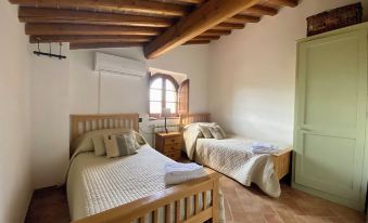 We stayed as a family of five and really enjoyed it. The farm house is lovely and well equipped, the location is great in the middle of the countryside. The separation of the kids (upstairs) and parents is a clear plus as is the air conditioning during hot Italian summer. The pool is close by and large enough to actually swim (or play). You can almost always a bit of shade on one of the two patios.