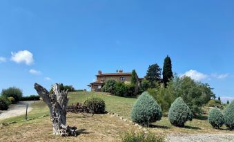 Located in the 'Parco Benestare', an area of outstanding natural beauty in the communes of Gambassi Terme and Montaione, Podere Collinella is ideally situated in a beautiful rural location with fabulous panoramic 360 degree views. The villa is a renovated 16th century converted farmhouse with a light & open feel. It has all 21st century amenities with well equipped bathrooms & kitchen and bespoke locally made furniture. The large shared pool (open 1 June-30 Sept) is a 50 metres walk away and boasts stunning views over classic Tuscan landscape. The property is attached to another but has an independent pathway, gardens and entrances. The west facing sun terrace is completely away from the adjoining property, the east facing patio has a dividing 2 metre high bamboo cane screen separating it from the adjoining property. Both patios are covered and having dining tables and chairs. The medieval hill towns of Volterra & San Gimignano are both 20 minutes by car and are perfect for sight seeing, shopping or dining out. The nearest village Il Castagno is only a 5 minute drive away and provides a local restaurant. Siena, Pisa, Florence or sandy Mediterranean beaches are all just 1 hour away by car (Florence is also accessible by train from nearby Castelfiorentino). The farmhouse is surrounded by olive groves & woodland and accessed along its own private gravel road. Please note that due to its rural location car hire is essential.About pets:No pets allowed.About checkOut:Check out before 10:00 AM.About children:Children allowed: ages 0-17.About checkIn:Check in after 3:00 PM.About smoking:Smoking is not permitted.No smoking inside the property please.About events:No events allowed.