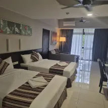 The room is spacious. Clean and tidy. Big tv function well. Aircond tip top. Pool for kid and adult well maintained.