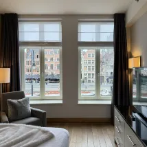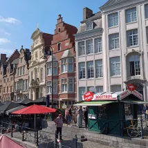 Juste au bord de la rivière aux Herbes, Gand est magnifique, l'hôtel est aussi magnifique, le personnel de service est très sympathique et la chambre n'est pas petite !