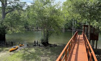 Escape to tranquility at our charming log cabin nestled on the banks of the beautiful Santa Fe River in Branford, Florida. Whether you're looking for a peaceful weekend getaway, an adventurous paddle down spring-fed waters, or a memorable family vacation surrounded by nature—this is your perfect home away from home.