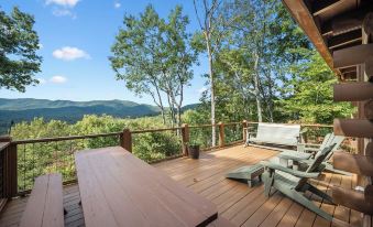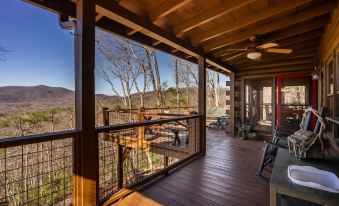 Welcome to Shiny Apple Cabins, SUM FUN: DOG-FRIENDLIEST MOUNTAIN CABIN. Wow-worthy mountain views. Fenced yard! All breeds/sizes and up to 3 pups welcome. Hot Tub with breathtaking sunset view. Two bedrooms with King beds, game room (w/ 2 Twin beds & Full-sized futon), and 2 full bathrooms. Enjoy the fireplace (wood provided), firepit, grill, and ample outdoor seating on 2 decks. Dog amenities and extra sanitation every stay. A log cabin with modern amenities for easy vacationing. Paved roads. Hike out the door to Benton MacKaye Trail. 17 minutes to downtown Blue Ridge and Ellijay.