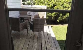 This darling property is private and steps to everything in Gloucester. We own both upstairs and downstairs units. The VRBO is Unit 1 on the main floor with its own entrance and relaxing yard. Steps to restaurants and downtown activities. Blocks to the beach. Comfortable & clean, AC throughout, with relaxing beach decor. About pets:No pets allowed.About checkOut:Check out before 11:00 AM.About children:Children allowed: ages 3-17.About customRules:No loud festivities after 10 pm. This is the main downstairs unit of our multifamily home. Our long term tenant upstairs is very quiet..About checkIn:Check in after 4:00 PM.About smoking:Smoking is not permitted.About minBookingAge:Minimum age to rent: 28.About events:No events allowed.
