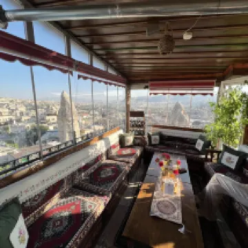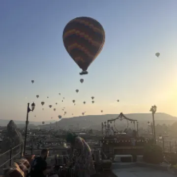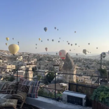 This is my favourite hotel through my holiday in Turkiye! Beautiful room, with bath tub and big size too. Breakfast is tasty & will be served to hotel guest and has quite a variety too. We really love the juice! Beautiful surrounding where you will be mesmerised with 360 degree view of Cappadocia. Hotel staff also very kind, which they help us book hot air balloon with affordable price! And let us check in early, check out late. In short, just book this hotel. You will have a great time. The only thing you should know is this hotel is located uphill but only like 5-7mins walk. For improvement, it would be a nice touch if breakfast menu change from day to day.
