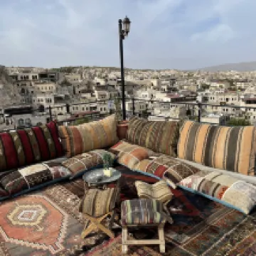 L'hôtel est tellement beau, avec des vues partout, l'aménagement et le mobilier sont très artistiques et réfléchis. Vous pouvez prendre de nombreuses belles photos dans l'hôtel seul. La terrasse donne sur la vieille ville, à 5 minutes du centre ville. Ali est un membre du personnel chaleureux et prévenant, vous pouvez le contacter pour organiser quoi que ce soit. Le petit déjeuner est copieux. C'est dommage que la montgolfière n'ait pas volé à cause de la météo.