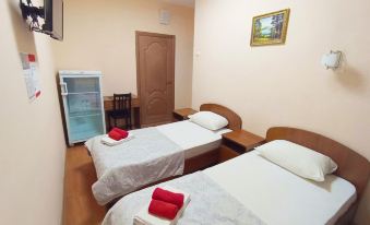 In total, the hotel has 22 rooms of several categories: Economy, Superior Economy and dormitories for men and women for 3 and 5 people. Each room is equipped with a bed, TV, desk, air conditioning and clothes rack. Showers and toilets are shared on the floor. It is possible to stay with pets.
