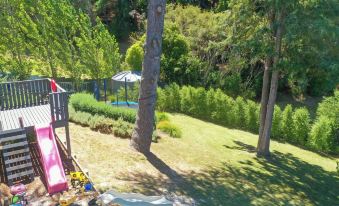 Kids will love the trampoline and sand pit - complete with rock climbing wall and slides.