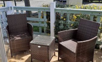 Tres bon accueil par la responsable du parc . Très bonne communication par téléphone avèc la propriétaire après notre arrivée. Chalet confortable avec une déco dans l air du temps. On s y sent bien. Tout le matériel mis à notre disposition est très appréciable