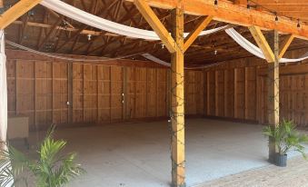 Please note that there are EXTERNAL cameras on the property for safety purposes of guests & owners.About pets:Pets allowed: dogs (limit 2 total).Must be disclosed ahead of time..About checkOut:Check out before 11:00 AM.About children:Children allowed: ages 0-17.About customRules:Please adhere to the 11 pm town noise ordinance. Take the party inside by this time!.Please take out trash to the dumpster across the street before you leave.,Pavilion/gazebo use is an additional cost. Please inquire for more info!.About checkIn:Check in after 4:00 PM.About smoking:Smoking is not permitted.About minBookingAge:Minimum age to rent: 21.About events:Events allowed: family gatherings, birthday parties, weddings.Maximum event attendees: 99,Events must be discussed & approved ahead of time!.