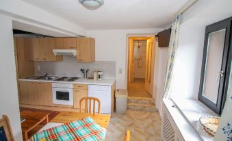 Petite résidence accueillante, simple "Kesselboden", de 3 étages, environnée par les prés et champs. À 500 m du centre, situation isolée, tranquille, dans une impasse. En commun: terrain à l'état naturel. Infrastructures de la Maison: Connexion WIFI, réduit pour bicyclettes, local pour les skis. Place de parking près de la maison. Magasin d'alimentation, restaurant, boulangerie, café 500 m, gare ferroviaire "Grünau im Almtal" 750 m. Centre équestre 2 km, télécabine 5.5 km, domaine skiable 5.5 km, location de ski 5.5 km. Arrêt du ski-bus 500 m. Attractions à proximité: Wildpark Grünau 6 km, Kinderland Schindlbach 7 km. Les domaines skiables de renommée sont facilement accessibles: Familienskigebiet Kasberg 6 km. Les lacs connus sont facilement accessibles: Almsee 13 km, Traunsee 20 km. Région de randonnées: Farrenau 3 km. Veuillez noter: équipement pour bébés sur demande. Groupes de jeunes sur demande seulement. Possibilité de pêche (autorisation nécessaire). Ski-bus gratuit. Animaux dans le voisinage. D’autres appartements sont également proposés à la location dans cette maison de vacances. Toutes les maisons/appartements sont aménagés individuellement.