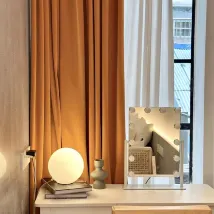 L'éclairage de la pièce est bien contrôlé. Mais le plateau de la table n'est pas assez long et il n'y a pas de place pour poser de gros bagages et objets.