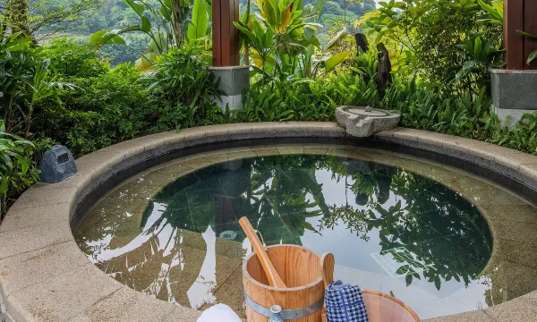 The hotel combines Eastern culture and hot spring culture, offering a blend of comfort, nobility, elegance, and luxury. It is a hot spring hotel with a high standard of Eastern art. Located in Conghua Hot Spring Town, the hotel is built against the mountain, facing the water, and blending into nature, forming a naturally advantageous geographical location. At the same time, the hotel incorporates ancient Chinese culture, following the principles of ancient cultural layout and natural living. Each guest room has an independent hot spring, allowing guests to enjoy the embrace and nourishment of the hot spring on their private balcony, presenting an elegant and private space.
