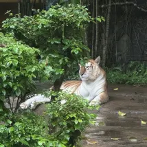 La chambre du Tigre Blanc est vraiment sympa. La chambre est assez spacieuse, avec des tigres et des flamants roses en bas. C'est agréable de se lever tôt le matin et d'aller sur le balcon pour sentir la jungle. De temps en temps, vous pouvez entendre le rugissement du tigre (trop cool)